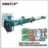 This machine can produce EPE tube, rod and profile through melting LDPE resin and then mixing it with butane gas, talcum powder, anti-shrinkage agents and other agents, then, the mixed material come out through the extruder and foam in the die part, then cool down and form, finally, it is pulled by 4 wheels to make the final product (can be rewinded in rolls). This machine adopts nitrated alloy screw, V.F. speed-regulation, cast aluminum heating ring, and automatic temperature controller, etc. Features: 1.Screw: 38CrMnALA nitrated steel, + heat-treatment (quenching and nitrogen treatment) + surface chrome plated, with the features of more stronger and tougher to longer the screw’s life time. Screw dia.: φ105mm, length: 4740mm (two-stage type). L/D is up to 45:1, increasing the screw’s plasticizing capacity and quality. 2.Barrel: 38CrMnALA nitrated steel + heat treatment (quenching and nitrogen treatment) can prevent damage of long-term use. The barrel connects with feeding part and die part through flange plates. 3.Feeding part: the feeding part connects with barrel and gearbox separately in the two ends. The raw material is sent to extruder from this part. Users should keep continuous circular water for this part, to prevent temperature rise, which may lead to sticky and blocky raw material, and which may further cause jam in the feeding mouth. 4.Main motor for extruder: The main motor is speed-adjustable DC motor. Model: 4~2000~31; main power: 55kw, with air cooling (fan). The main motor is connected with the main screw by gearbox. 5.Butane input and butane pump: high-pressure dosing pump. This pump presses the liquefied butane into barrel at pressure of 1015Mpa (100--150kg/cm2). Butane and the melted LDPE mix with each other in the barrel. There is one-way valve where butane enters barrel to ensure melted LDPE not reverse back when barrel’s pressure is higher than butane’s pressure to reach safe production. 6.Anti-shrinkage input and anti-shrinkage pump: anti-shrinkage pump heats the anti-shrinkage at pressure of 10 15Mpa (100 150mm/cm2) and then press it into the barrel. Melted anti-shrinkage and LDPE are mixed in the anti-shrinkage agent’s feeding part, where there is one-way valve ensurethe melted LDPE not reverse back when barrel’s pressure is higher than anti-shrinkage agent’s pressure to reach safe production. 7.Die part: melted raw material is extruded from this part. Raw material begins foaming as soon as it arrives the die lip. The EPE foam sheet thickness is decided by die lip and pulling speed. 8.Sizing drum: EPE foam sheet width is decided by this part, so cooling water and cooling air should be supplied here. 9.Pulling roller: the sheet expanded by sizing drum enters this part for pulling. At this time, pulling speed must be average to ensure sheet quality. Pulling roller diameter length is φ480 1550mm, with speed-adjustable motor to adjust the pulling speed. 10.Translocation-type rewinding roller: in this part, there is meter counter which can set the sheet length. When the first rewinding roller arrives the preset length, it can turn over 180° and the second rewinding roller begins to rewind. Parameters model 90 105 120 70 screwL/D 1:55 1:55 1:55 1:55 Productioncapacity 80-120kg/h 100-150kg/h 120-180kg/h 40-80kg/h productdia. 20-90mm 30-110mm 50-130mm 15-50mm foamefficiency 20-47 20-47 20-47 20-47 coolingway aircooling totalpower 70kw 85KW 98KW 60KW Screwspeed 20-80rpm 20-80rpm 20-80rmp 20-80rmp Dimension 10000×2300 ×2200mm 11000×2500 ×2200mm 15000x2500x2200mm 8000x2200x2200mm weight 4.5T 5.5T 6.5T 4.2T